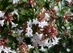 - L’abélia , qui joue souvent les prolongations, dont le parfum mielleux est perceptible à plusieurs mètres.